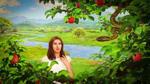 “งูจึงพูดกับหญิงนั้นว่า ‘พวกเจ้าจะไม่ตายแน่ เพราะพระเจ้าทรงทราบอยู่ว่า พวกเจ้ากินผลจากต้นไม้นั้นวันใด ตาของพวกเจ้าจะสว่างขึ้นในวันนั้น แล้วพวกเจ้าจะเป็นเหมือนอย่างพระเจ้า คือรู้ความดีและความชั่ว’ เมื่อหญิงนั้นเห็นว่าต้นไม้นั้นดีน่ากิน ทั้งเป็นต้นไม้น่าปรารถนาที่ทำให้เกิดปัญญา จึงเก็บผลไม้นั้นมากิน แล้วส่งให้สามีที่อยู่กับเธอกินด้วย เขาก็กิน…เพราะฉะนั้นพระยาห์เวห์พระเจ้าจึงทรงไล่เขาออกไปจากสวนเอเดน ให้เพาะปลูกบนดินซึ่งใช้สร้างเขาขึ้นมา พระองค์ทรงขับไล่ชายนั้นออกไป และทรงตั้งเหล่าเครูบทางด้านทิศตะวันออกของสวนเอเดน และตั้งดาบเพลิงอันหนึ่งที่หมุนได้ไว้เฝ้าทางที่จะไปสู่ต้นไม้แห่งชีวิตนั้น” (ปฐมกาล 3:4-6, 23-24)